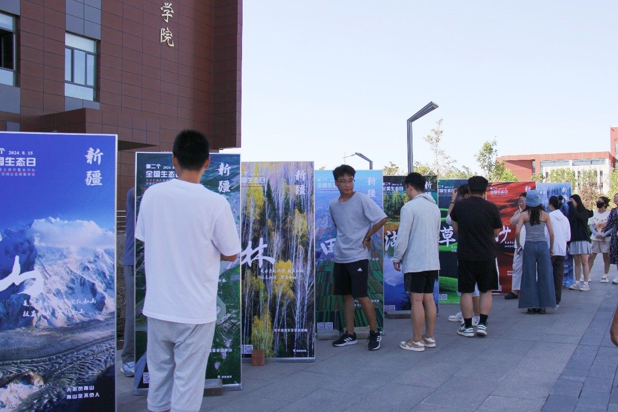 活动中,各相关单位在南大街社区乌鲁木齐市人民广场、伟德国际1946官方网站博达校区两个主场,分别组织开展宣传交流活动,现场摆放体现新疆自然资源禀赋的宣传展板,介绍和展示新疆“山-水-林-田-湖-草-沙-冰”自然生态要素及相关知识。向路过群众和在校老员工发放宣传册页,广泛宣传“绿水青山就是金山银山”理念,营造和倡导绿色低碳生活方式。此外,现场还开展了有奖问答,涵盖生态保护、绿色生活等内容,既有深度又贴近生活,让参与者在思考与互动中深化对生态文明的认知。