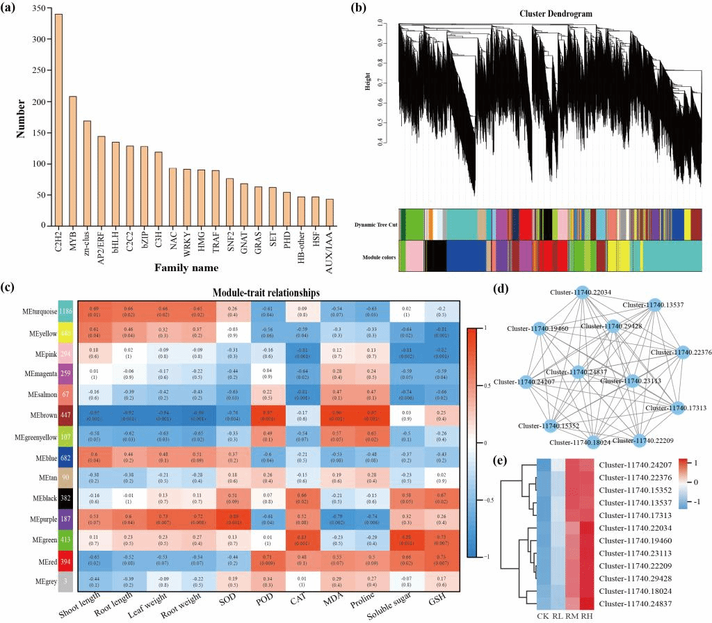 图1 转录因子(TF)加权基因共表达网络分析(WGCNA)的结果