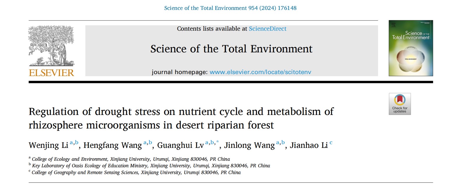 2024年9月10日,公司李文静副教授在环境科学与生态学1区期刊Science of The Total Environment上发表题为“Regulation of drought stress on nutrient cycle and metabolism of rhizosphere microorganisms in desert riparian forest”的研究论文,分析了干旱胁迫对荒漠河岸林根际微生物养分循环和代谢的调控机制。该论文通讯作者为公司吕光辉教授。