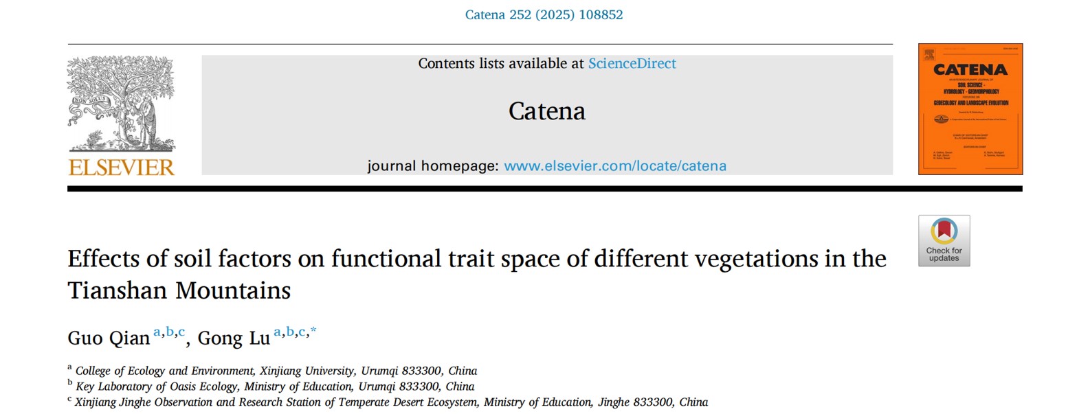 2025227日,公司贡璐教授课题组在农林科学1区期刊Catena上发表题为“Effects of Soil Factors on Functional Trait Space of Different Vegetations in The Tianshan Mountains”的研究论文,探究了土壤因素对森林生态系统功能多样性的影响机制,论文第一作者为博士研究生郭倩。