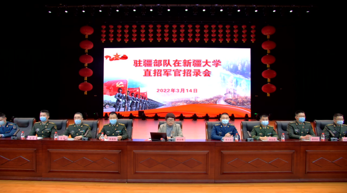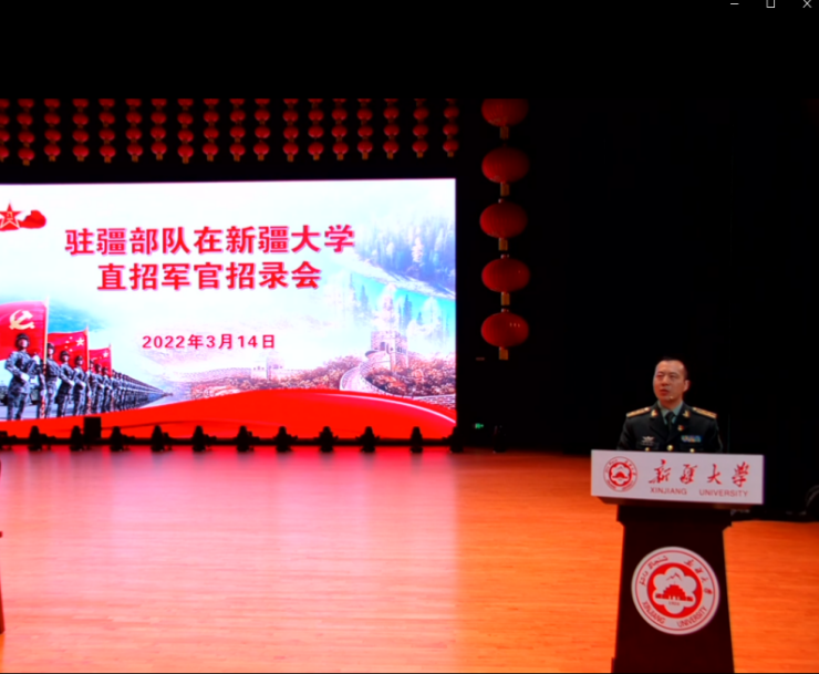 驻疆部队选拔招录组代表为新大学子做2022年直接选拔招录政策解读,他结合习近平强军思想和战略支援部队的使命责任,深入剖析了新时代国家面临的形势和部队人才需求,详细介绍了军队人才引进的渠道、招录标准和具体招录程序,并从身份属性、成长路径、功勋荣誉、薪资待遇、住房保障、医疗保障、休假保障、家属待遇、子女教育、退出机制等方面着重讲解了直招军官与文职人员的区别。其他部队宣讲人员也相继为同学们答疑解惑,针对专业要求、考核内容、工作责任、政审规则、工作地点等问题现场展开交流问答,并鼓励大家携笔从戎,踊跃报名加入到强军队伍中。