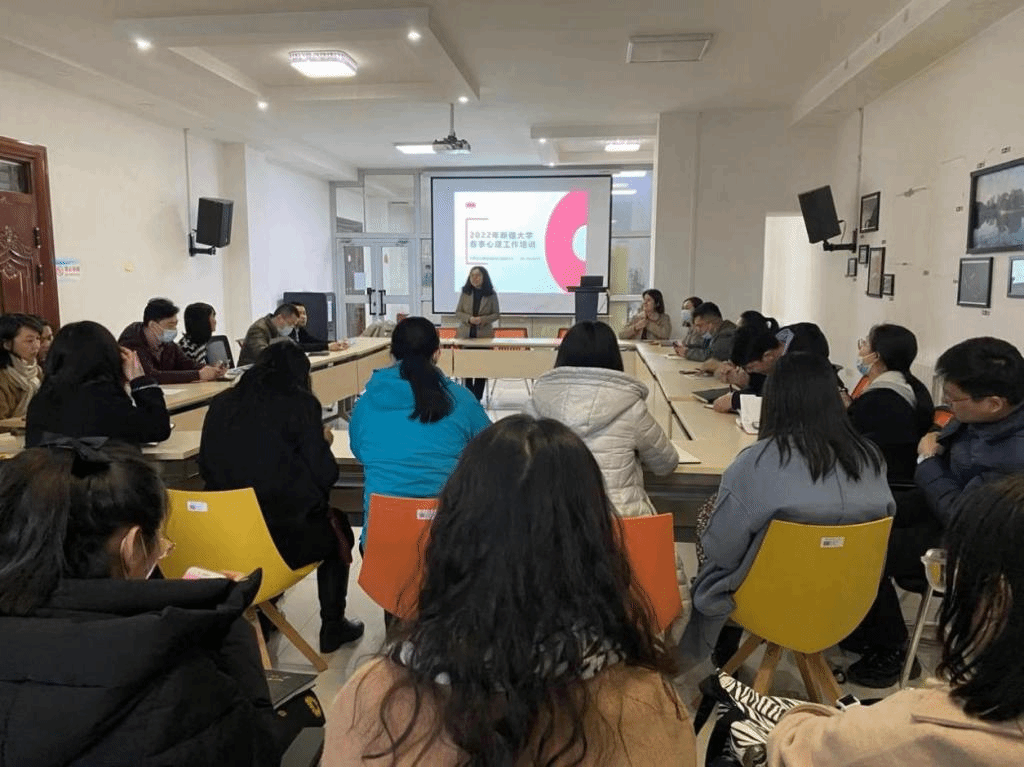 培训中,老员工心理健康教育与咨询中心副主任热娜古丽·艾赛提按照老员工心理健康教育工作四级预警防控体系架构,细致讲解了春季老员工心理危机干预的主要工作内容及特点,并结合真实案例讲述了老员工常见的心理问题和适当的干预方式,加深了在场老师对心理危机干预方法的理解。反思性教学是教师专业发展的有效途径之一,与心理学社会建构主义有着内在一致性,二者相结合产生的心理反思性小组,会认为每个人都是“专家”, 且拥有一套成熟处理问题的方式方法。彭向君老师从这个角度出发,对反思性小组的建设、操作及应用进行细致的讲解,并对在场老师的疑问作出耐心回应,还通过现场模拟咨询的方式,近距离让老师们了解反思性小组的意义,引导大家如何深入聆听、观察,学会从自身角度去指出问题,更好地向他人分享自身所得。